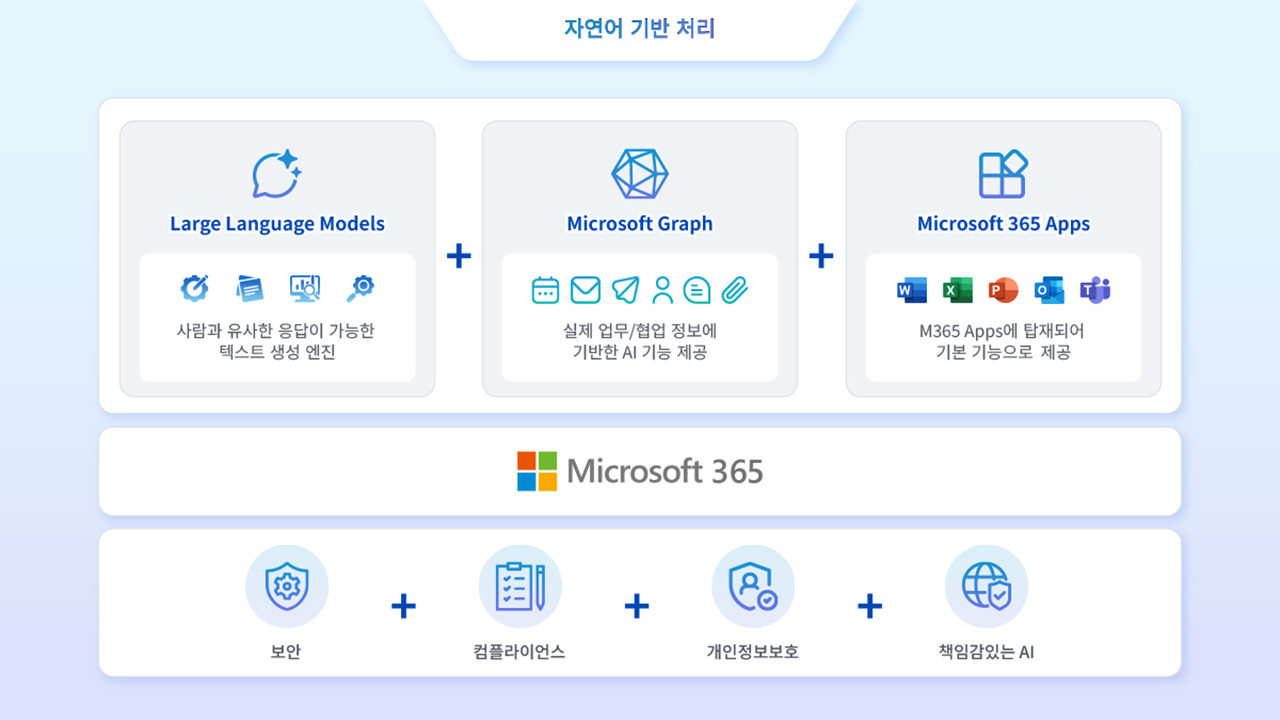 Microsoft 365 서비스 기반의 기업용 생성형 AI 에이전트로, M365 기반의 업무 및 개인 데이터를 인덱싱합니다.